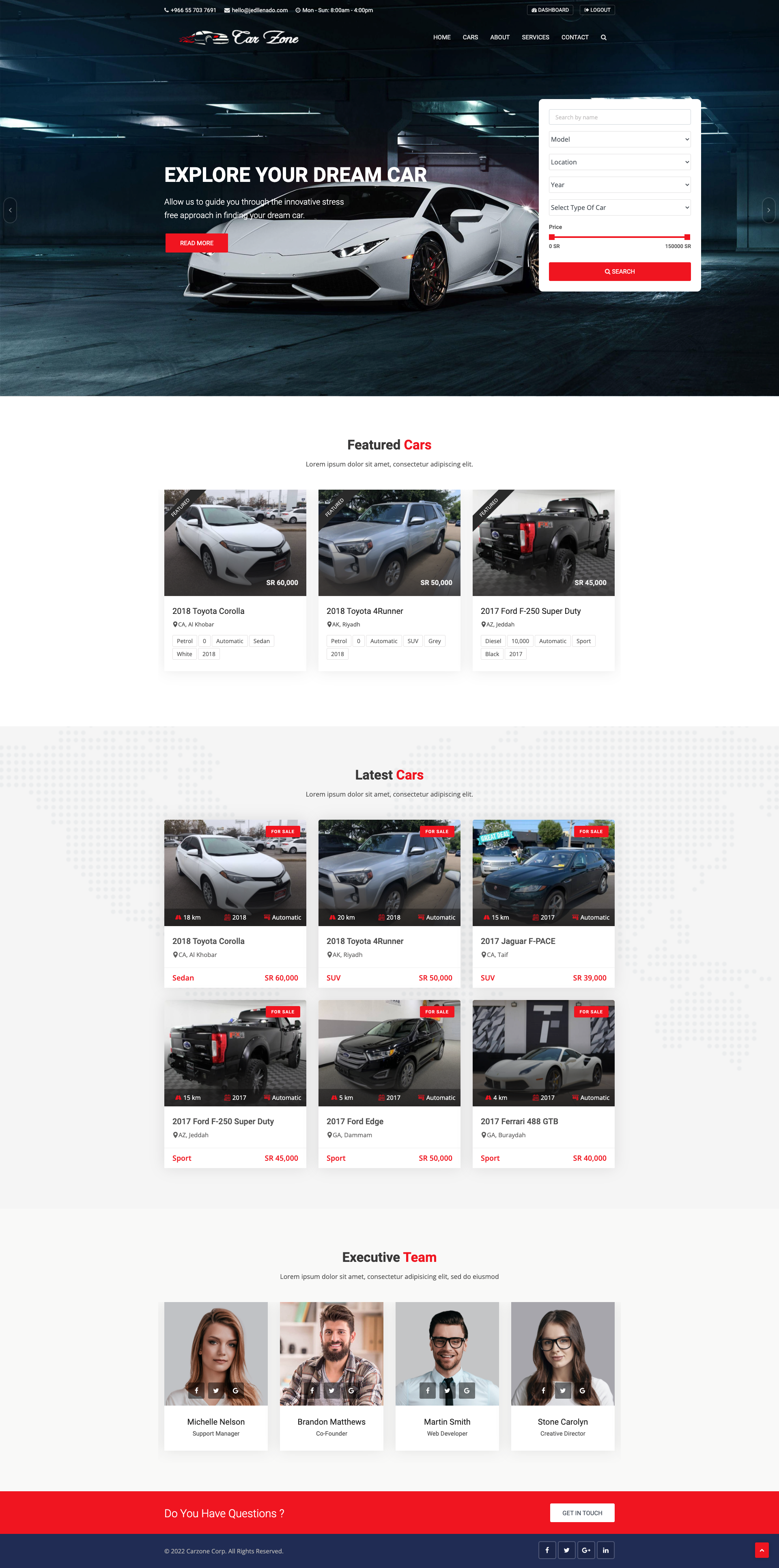 Features: Cars Listing, Custom Search, Facebook & Gmail Login and Register, Contact form, etc.